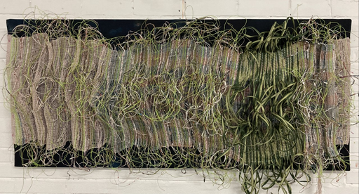 Ik werk met organische vormen en experimenteer met technieken als wikkelen, weven en knopen. De werken ontstaan zowel op het platte vlak als in drie dimensies, en bewegen zich tussen beeld en ruimte.
